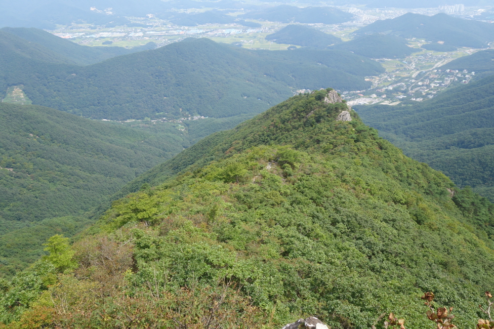 앞에 보이는 봉우리가 하산지점인 912봉이다