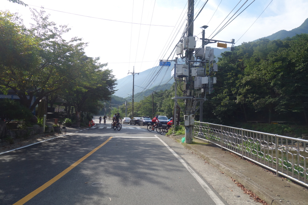 영남알프스 산장 앞-자전거팀이 지나가고 있다