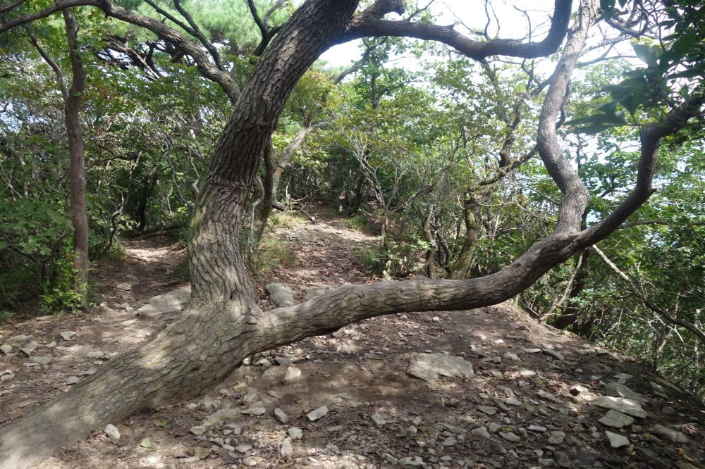 흙 한줌 없는 바위에 아주 멋진 소나무가 자라고 있다