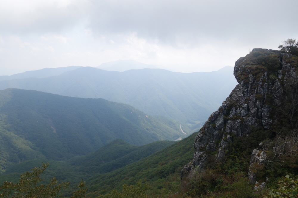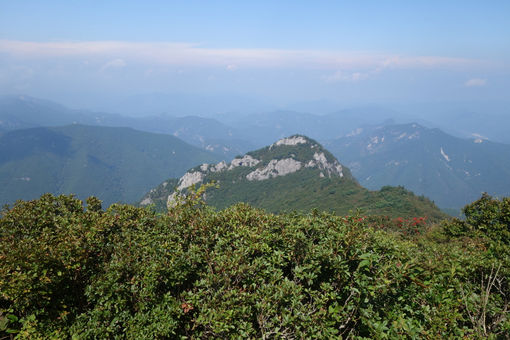 정상에서의 조망은 개스가 끼어서 만족스럽지 못하다.