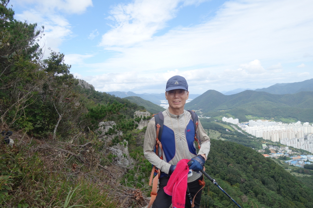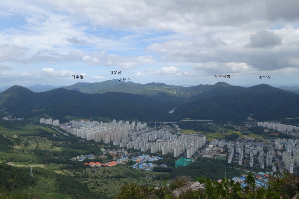 멀리 좌로부터 고당봉 장군봉 신어산 토곡산등이 보인다