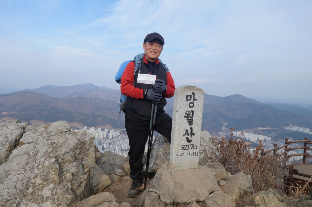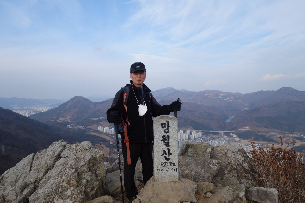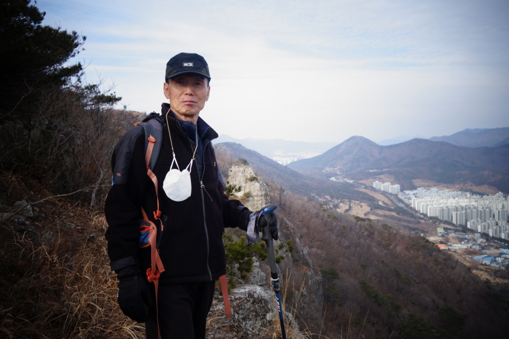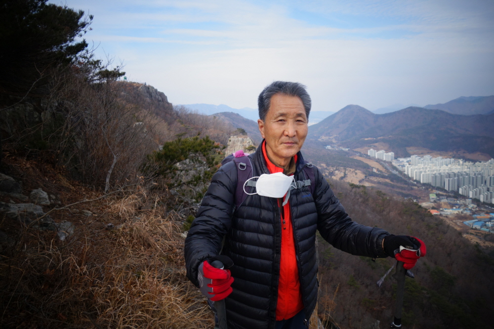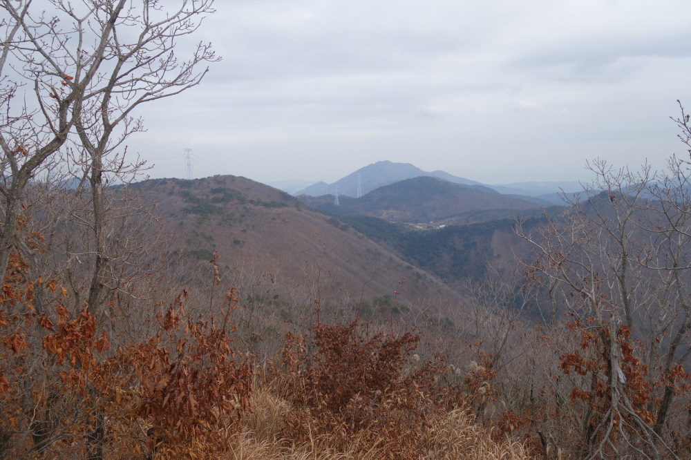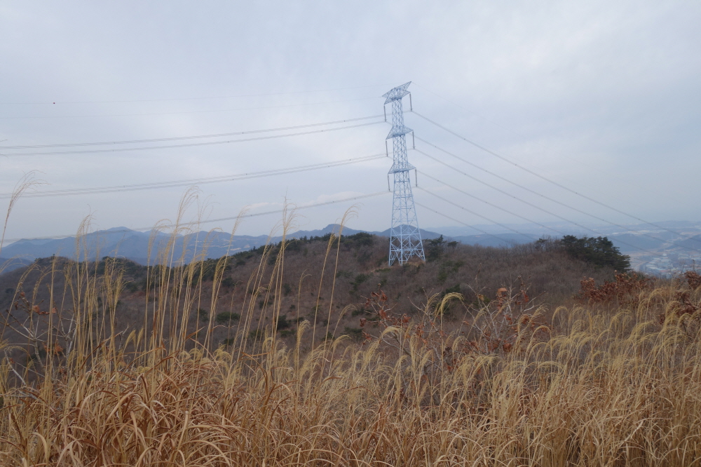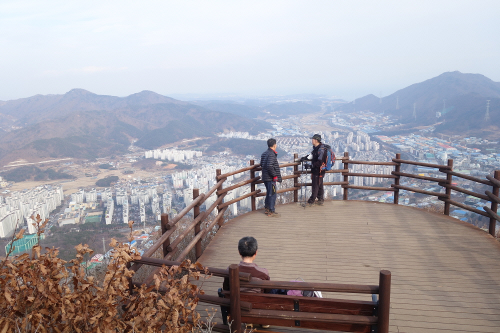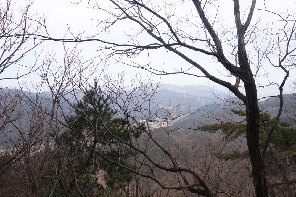 멀리는 대운산과 그 앞으로 석은덤봉 함박산 능선이 일자로 서 있다