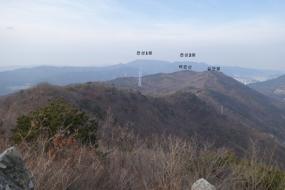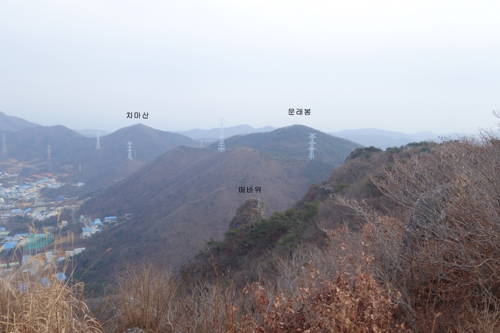 좌측 멀리부터 대운산 시명산 석은덤봉 함박산 달음산 치마산 문래봉등이