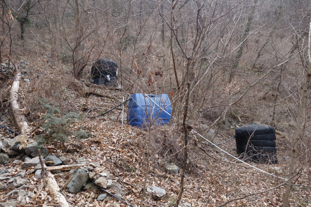 백양농원 방향에는 차가 진입하지 못하도록 줄을 쳐 놓았다