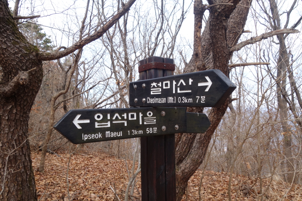 입석마을에서 오는 길과 만나 철마서봉에 선다.