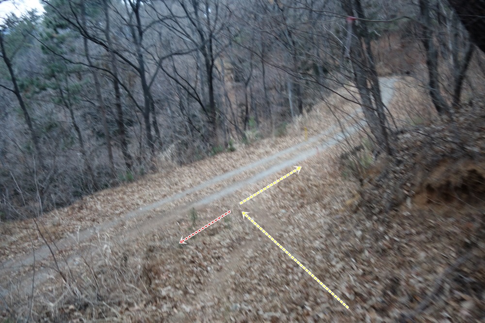 우측으로 임도를 따라 가다가 임도삼거리에서 다시 좌측으로 내려서서