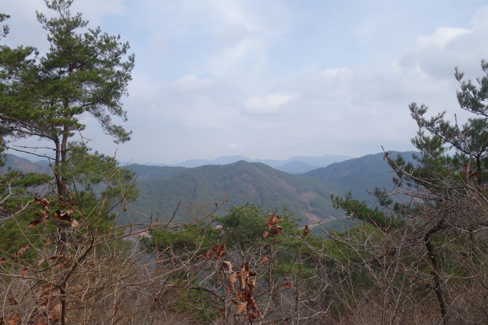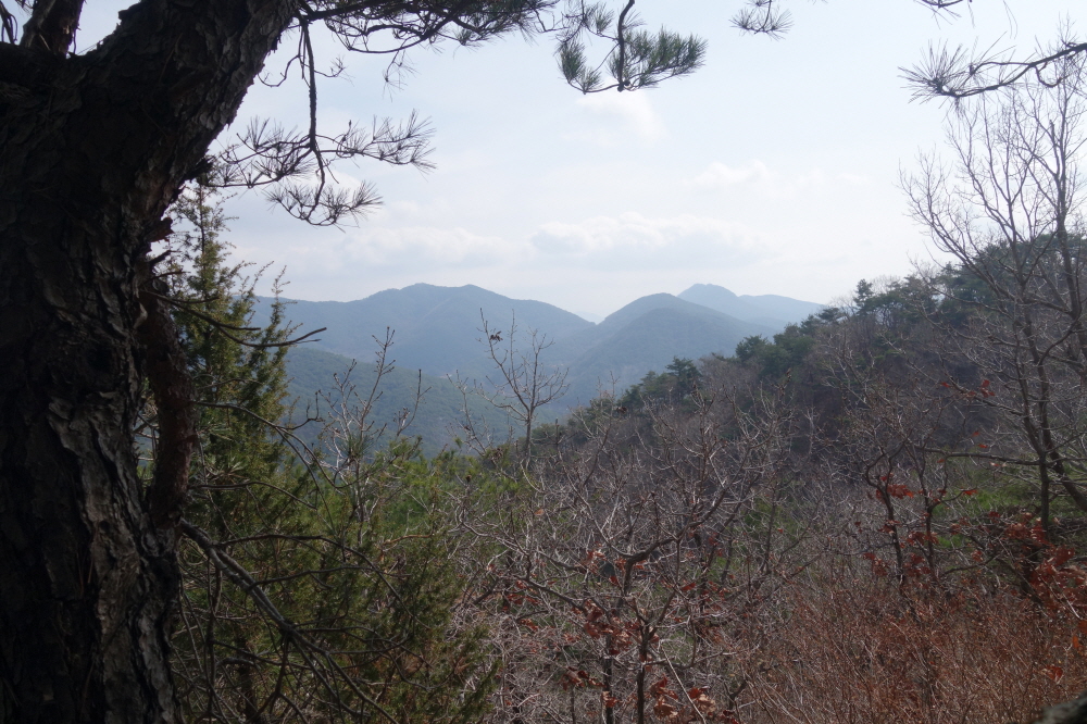 오봉산과 자굴산 등이 이어진다고 하는데 흐릿해서 구분을 못하겠다.