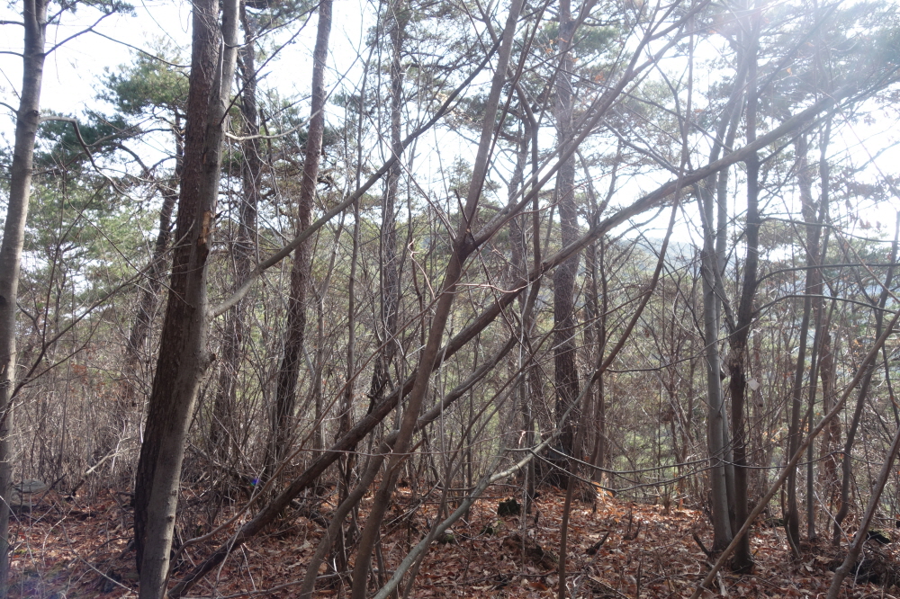 용암산을 만날 때까지 잡목을 헤집고 다니면서 길을 이어가야 한다.
