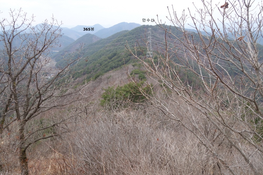 낙남정맥 갈림길 전망대에서 바라본 만수산과 보잠산 갈림길이 있는 365봉