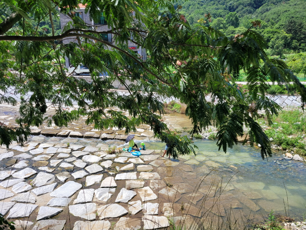 광산사에서 약 3km를 40분 걸어서 집사람이 쉬고 있는 감천계곡에 도착했다.