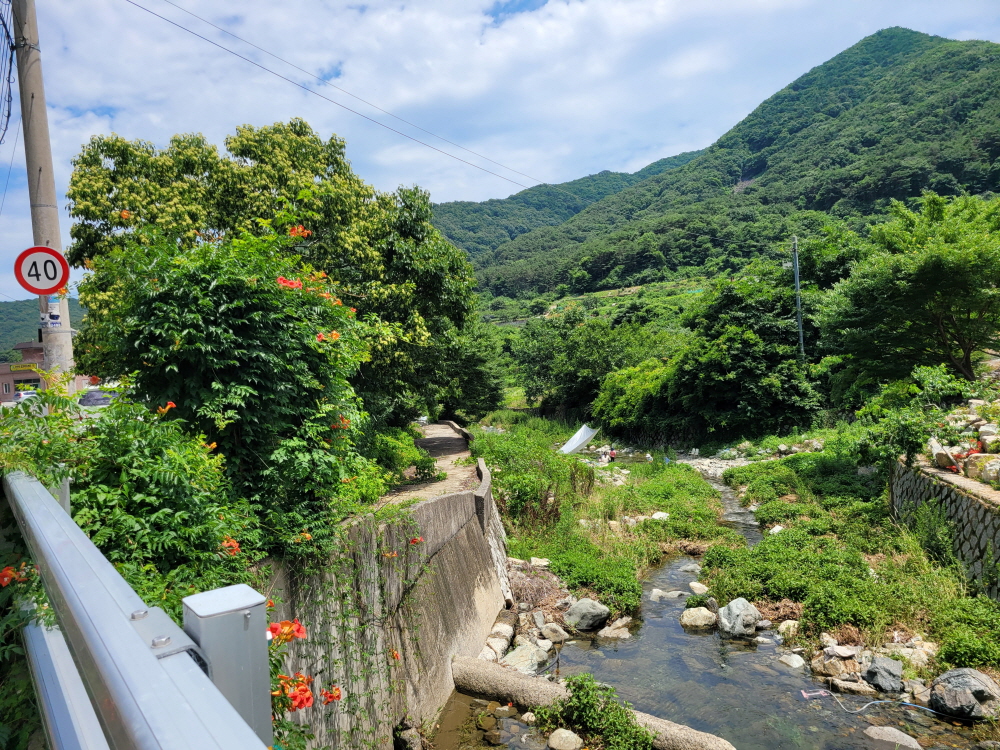 일주문을 지나 도로를 따라서 약40분 감천계곡까지 걸었다