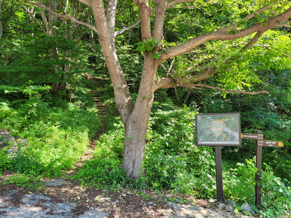 키 큰 나무들이 햇볕을 막아주어서 여름철에도 산행하기 좋을 정도다.