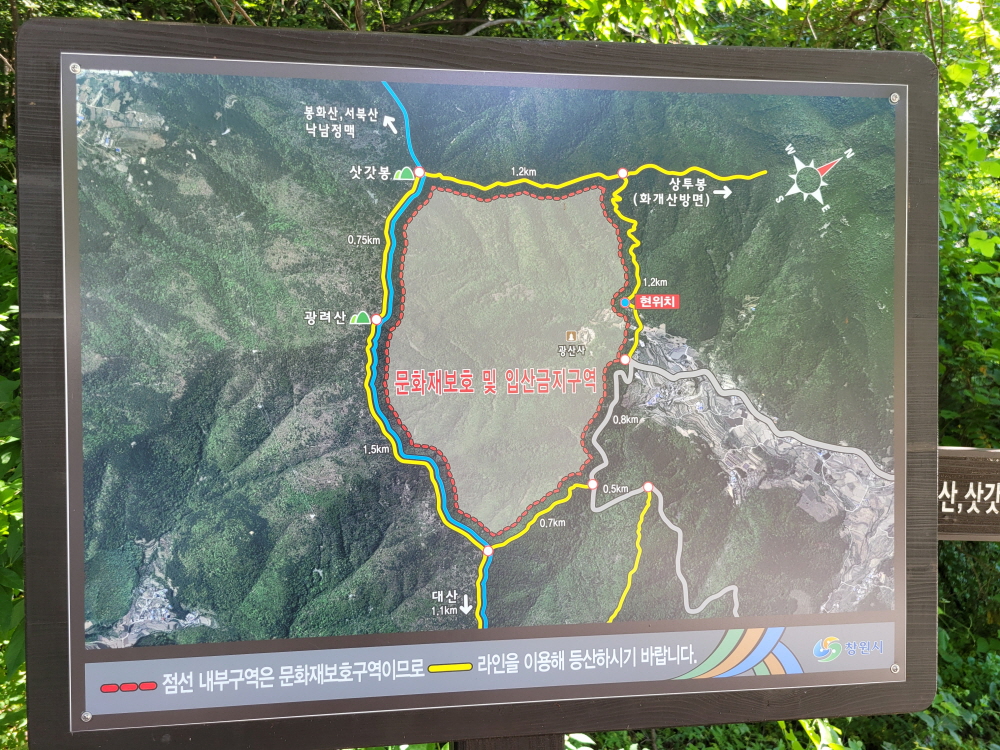 코스: 광산사 입구/세광수양관/단계사/외딴집/능선/삿갓봉/광려산/갈림길/광산사
