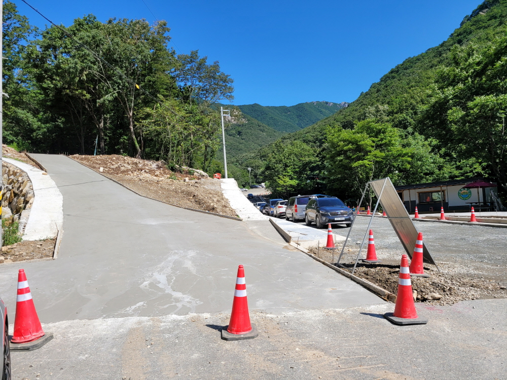 주차장에서 관리원 두 분을 만나 입구 공사 현장을 물어보니,