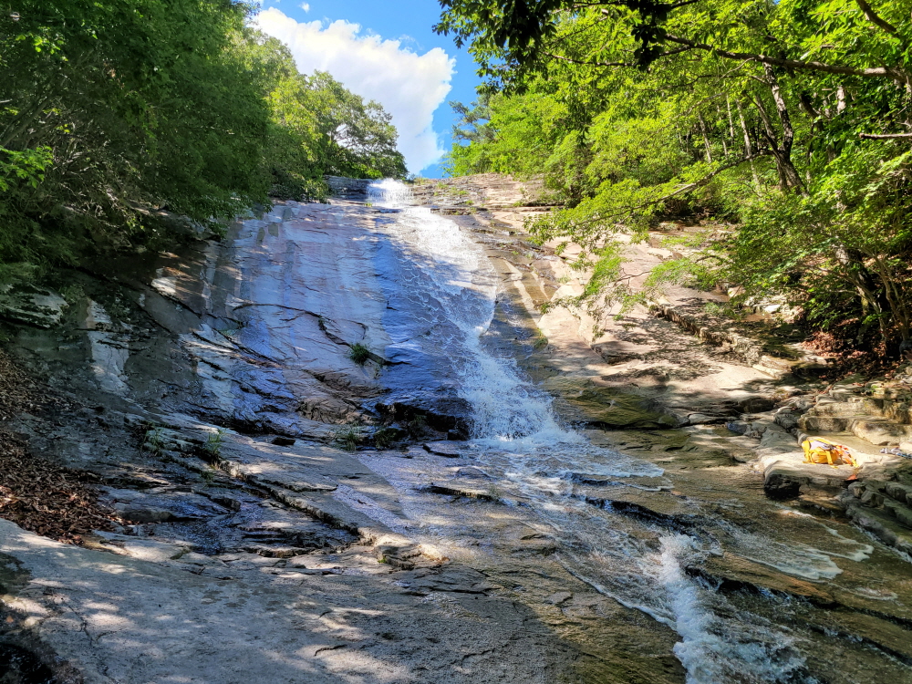 폭포수로 더운 몸을 식히고 계곡으로 내려서니,