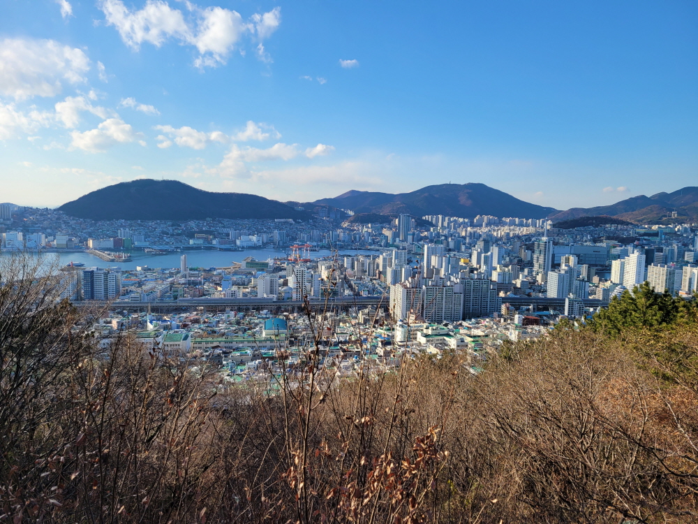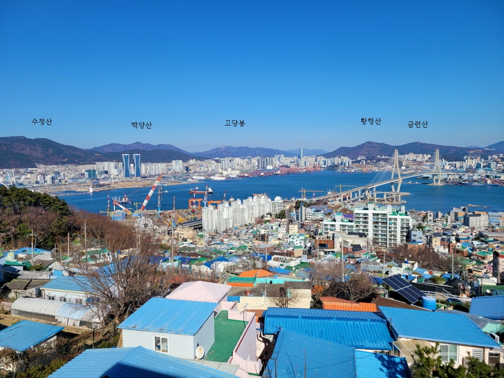 마지막 전망대에 서면 바로 정면에 구덕산이 보이고