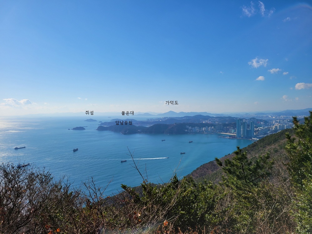좌측으로는 송도 해변과 암남공원 다대포몰운대 가덕도가 보이고