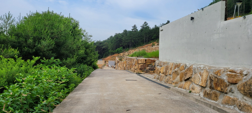 정면 좌측에 보이는 시멘트포장 도로로 올라서면 들머리다