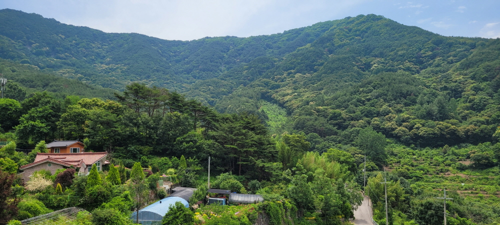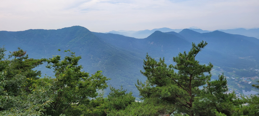 정면으로 만어산과 구천산, 그 좌측으로 토곡산이 보이고