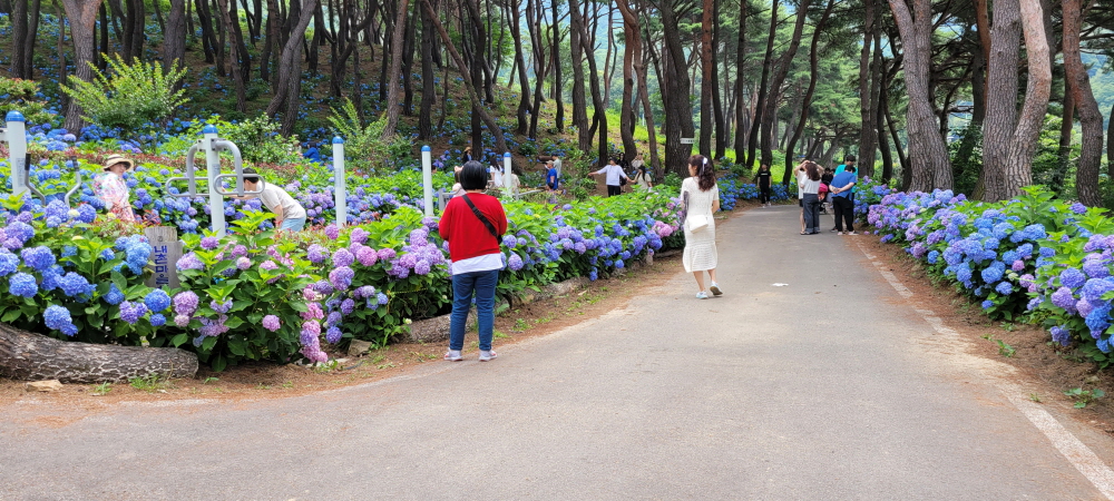 아주 넓은 면적에 수국을 심어 관리하고 있고