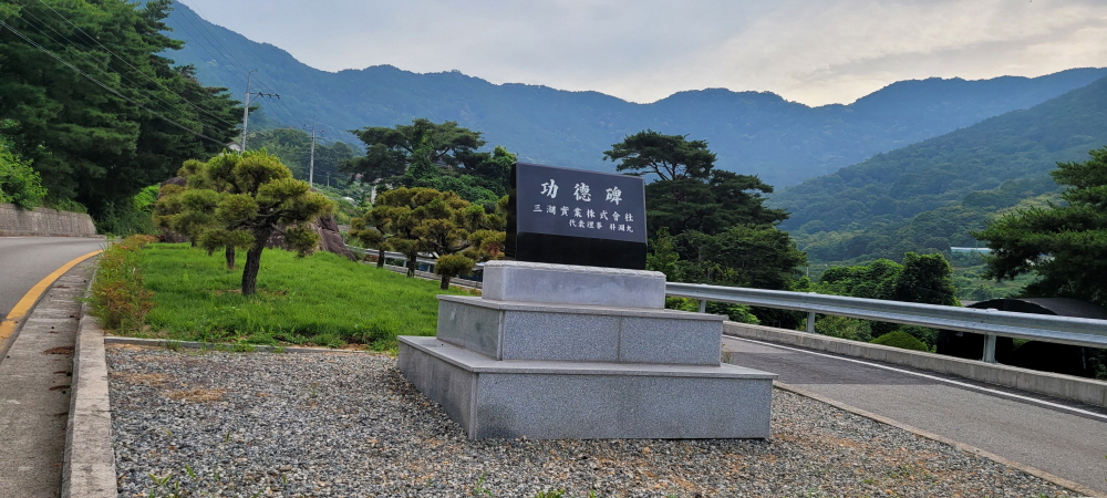 마을 도로 확장 공사를 삼호실업 박연구 회장이 앞장서서 했다고 공덕비를 세웠다