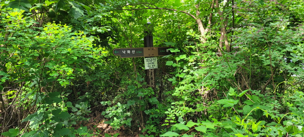 코스: 공덕비(전원주택지)/암릉지대/비학산갈림길/암릉우회/전망대/보담산(보두산)/낙화산/안당골갈림길/안당골/공덕비