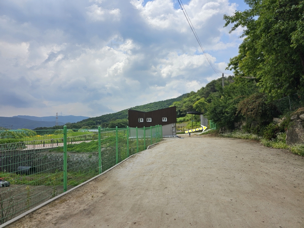저수지가 있고 화장실이 있는 저곳에서 우측으로 간다