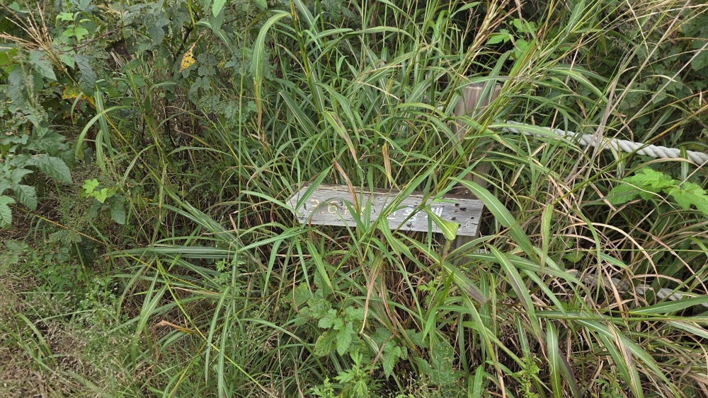 과수원 입구가 잡목과 넝쿨 식물들이 한데 어우러져서 입구를 꽉 막고 있다.