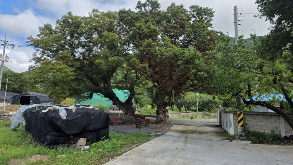 오진리 마을 입구 당산나무 부근에 주차를 한다