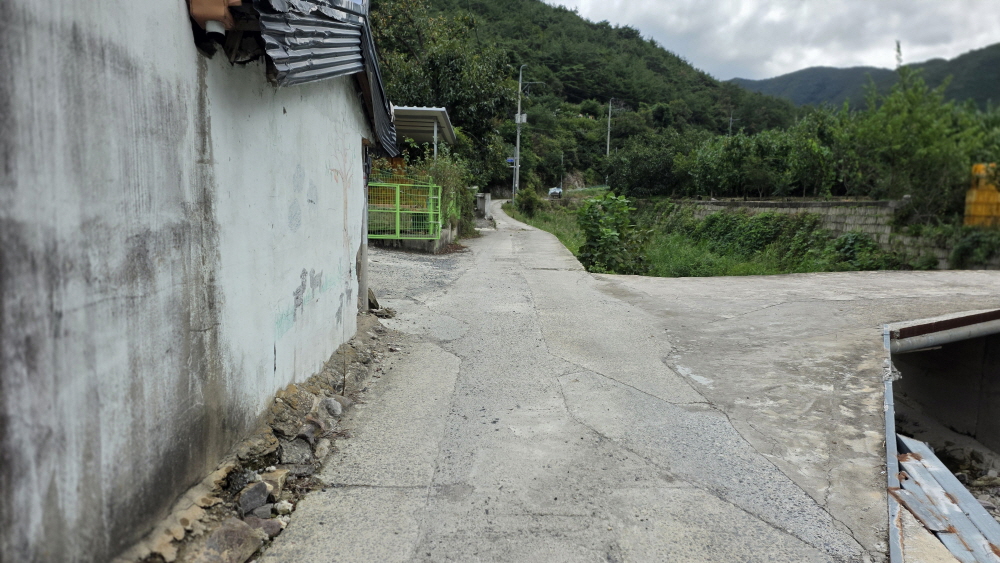 이 다리를 건너 마을 끝집에서 30여 m 좌측에 들머리가 있다