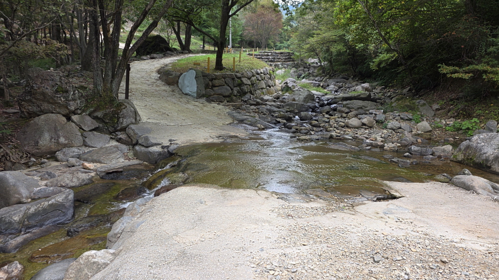 주차장 앞 이곳에서 계곡을 건너야 한다