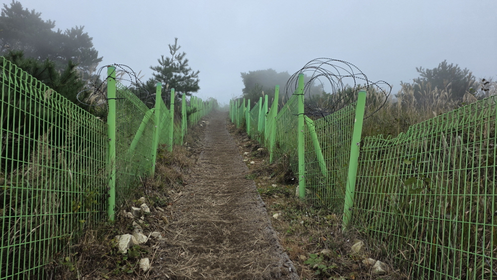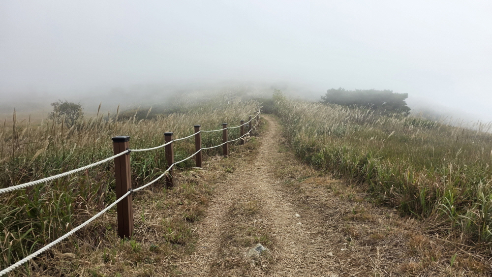 능선에서의 날씨는 안개가 자욱해서 100여m 정도의 가시거리 밖에 확보가 안 된다.