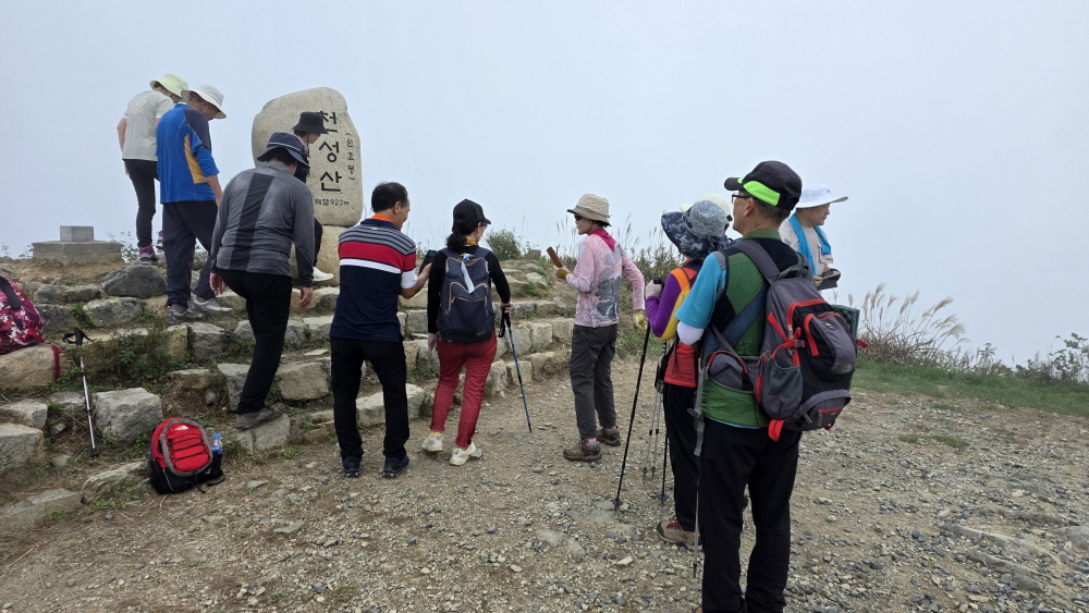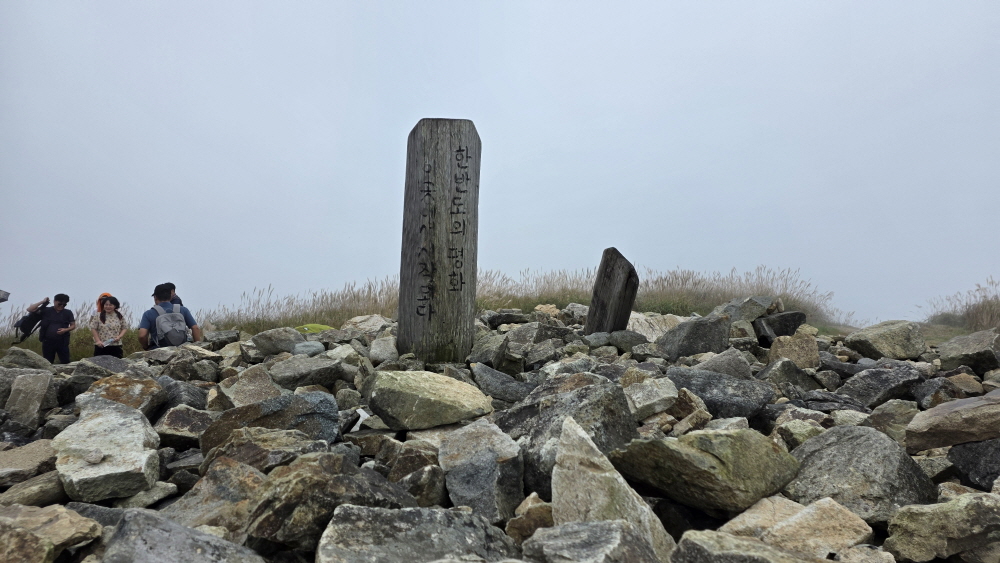 일부는 정상석 인증사진을 찍기 위해 줄을 서 있고,