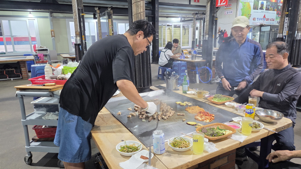 저녁을 먹기는 조금 이른 시간이지만 호포역 앞 철판구이 삼겹살집에 들러