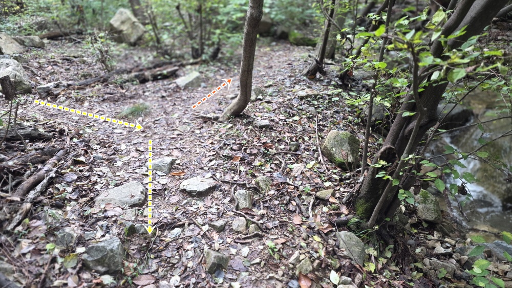 역으로 올라가려 하니 계곡 삼거리에서 길을 놓치고