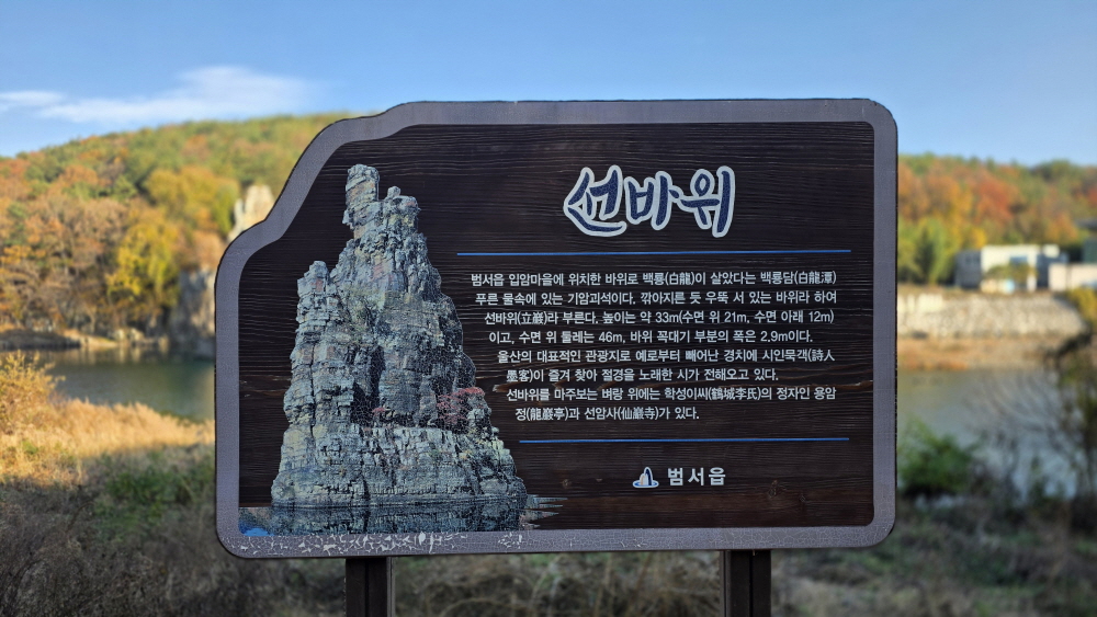 코스 : 사일회관/정자 쉼터/만수로 산책길/무학산 만디 갈림길/서만수 공덕비/태화강 백리길 합류/사연호 전망덱/임도/대곡 박물관 갈림길/한실재(임도 삼거리)/안내판 삼거리/무학산 정상/사일회관 갈림길/무학산 만디(산불초소)/사일회관 갈림길/사일회관