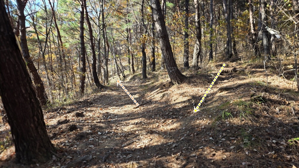 욱곡마을 방향 임도에[서 보면 이렇게 오솔길이 있다