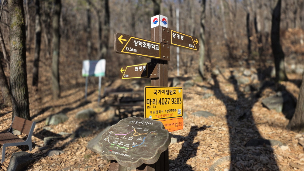 코스: 만덕1동 주민센터/상학초/운동시설/묘지 삼거리/전망데크/상계봉/제1망루대/파리봉/제1망루대/헬기장/석불사/운동시설/상학초/만덕1동 주민센터