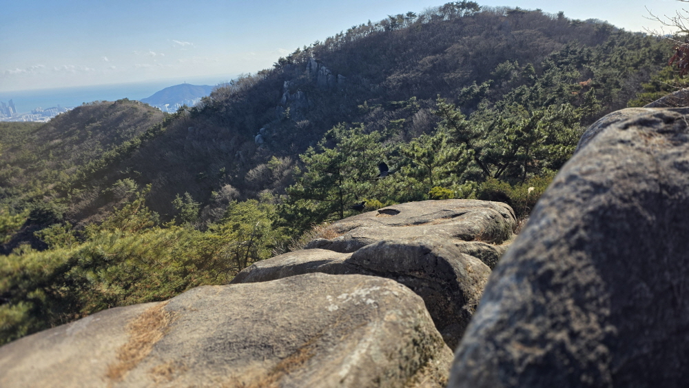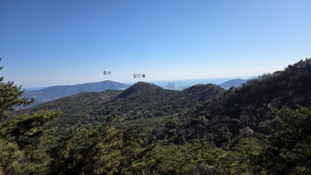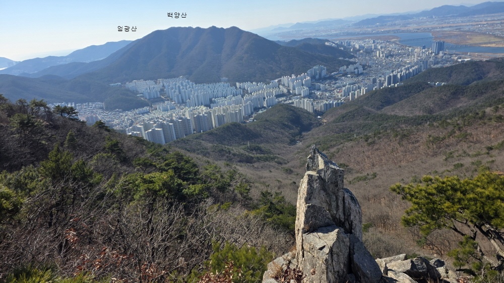 다시 상계봉 앞 바위 전망대에 서면 우측으로 백양산 줄기가 보이고