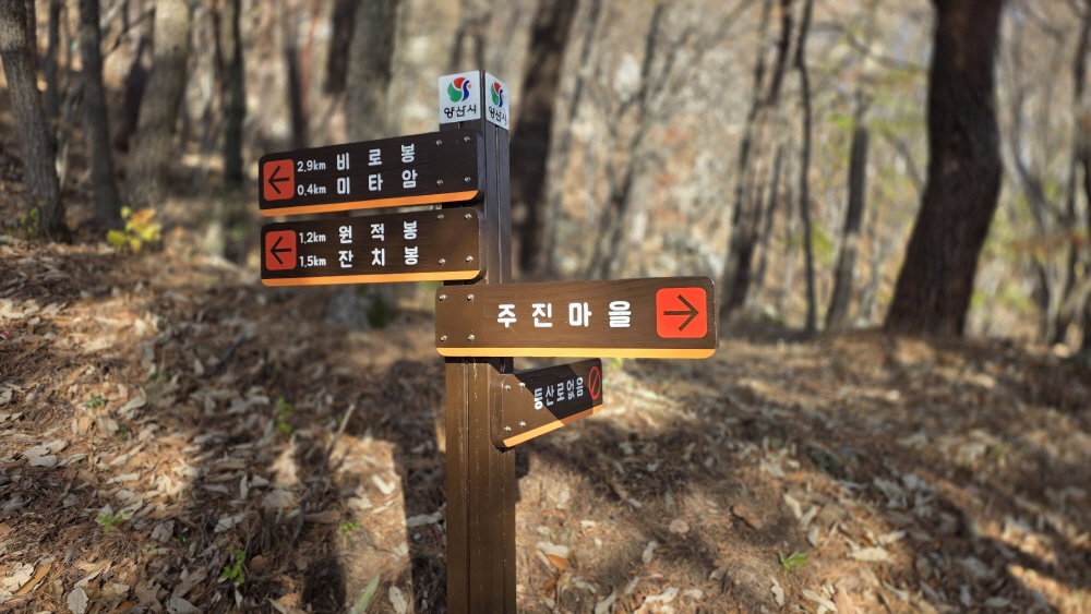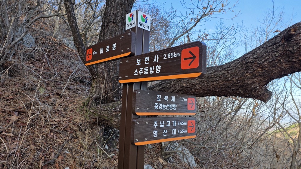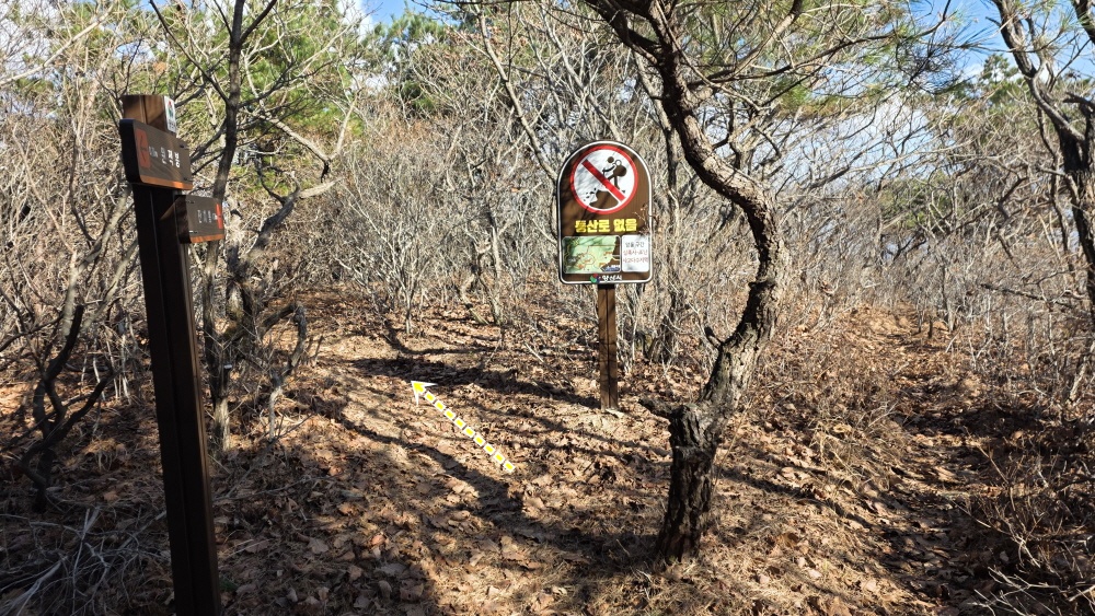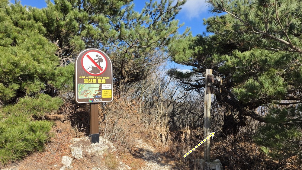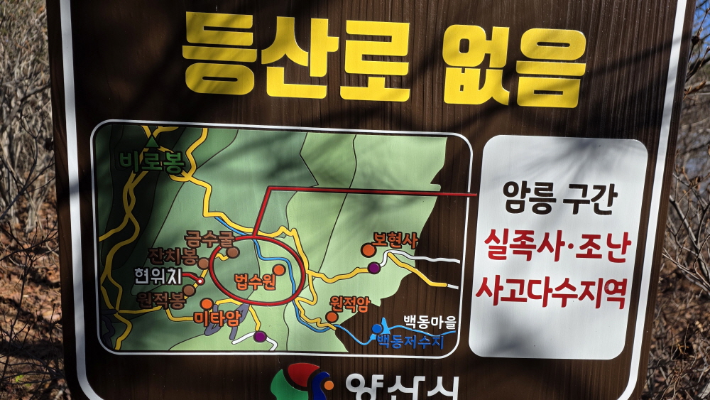 법수원 방향은 '등산로 없음'이라고 안내판이 붙어 있다